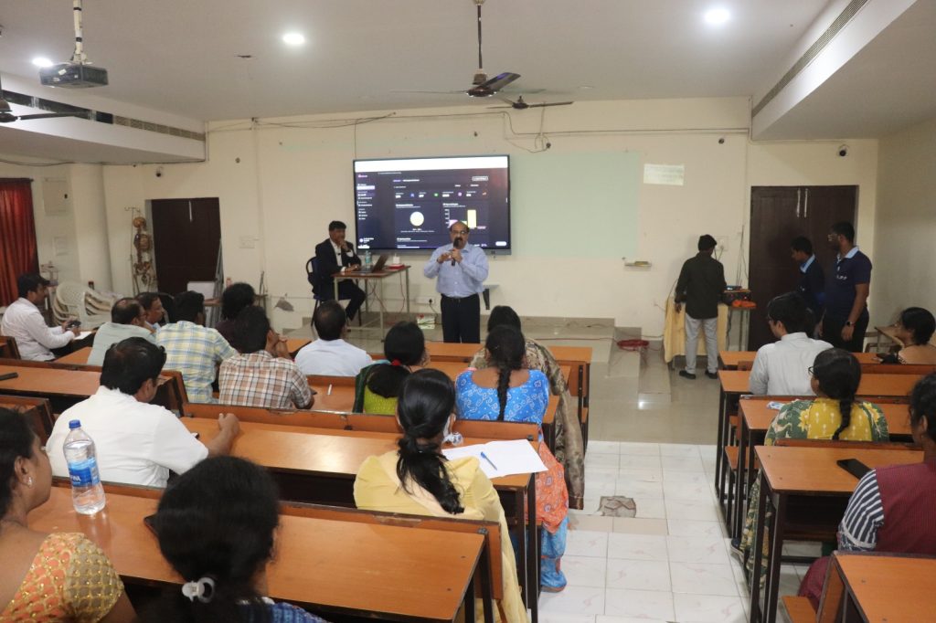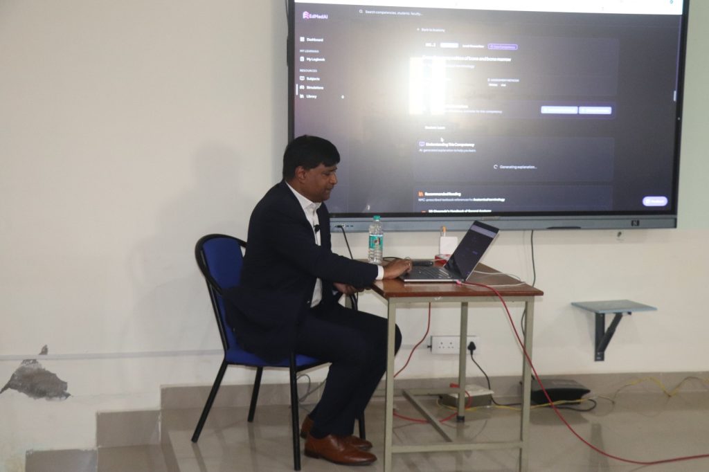 During the session, Dr. Sekhar demonstrated how AI-driven platforms can provide transparent evaluation, personalized learning pathways, and continuous academic monitoring for MBBS students.